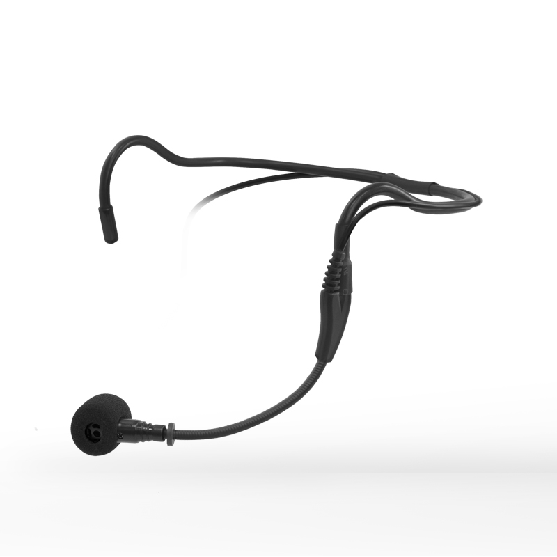 O microfone de cabeça é muito pequeno e tem um estilo requintado para uso suspenso.
